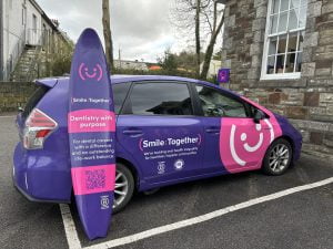 We’ve therefore been upgrading our fleet so we also have a fully electric decon/courier van. Thanks to Fuel and No2TheSame, our EV van and hybrid car are very clearly (and brightly) branded Smile Together, matching the single-surgery mobile dental unit that we acquired and rebranded in 2022.