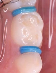 The technique depends on the co-operation of the child. In most cases there will be minimal preparation is needed for placement. “Elastic bands” are flossed between the teeth to create a small amount of space, these will be left in place for between 2-5 days and then they are subsequently removed and then a metal crown can be fitted. The metal crowns are ‘pre-made’ the correct size will need to be chosen by the clinician once correct this will be cemented over the top of the tooth.
