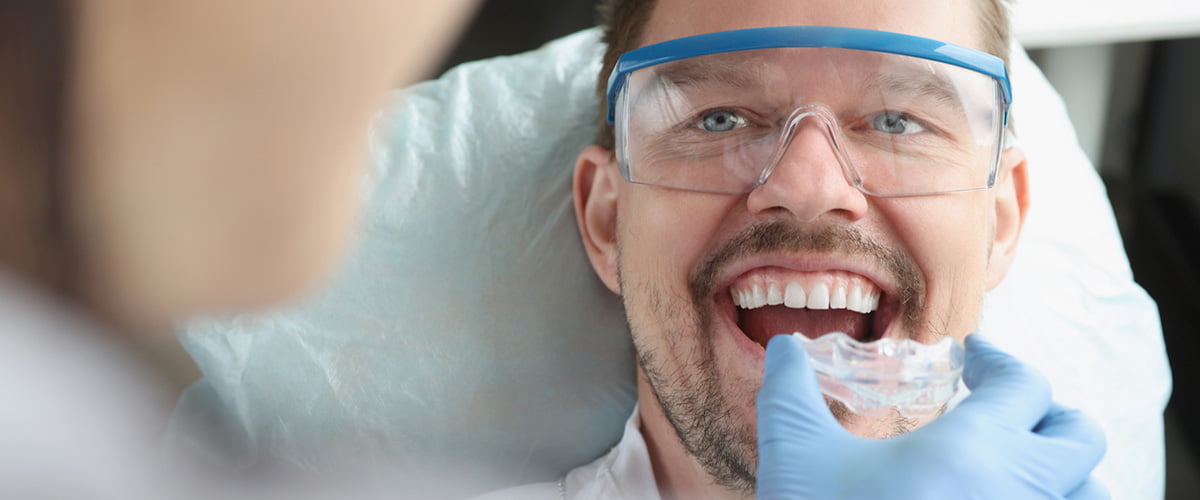 Mouthguards cover the teeth and are designed to absorb impact and prevent any mouth injuries. It is important that your mouthguard fits well as it could otherwise cause damage to your teeth or gums. Our mouthguards are custom made in a lab using an impression of your teeth so it fits your mouth snugly.
